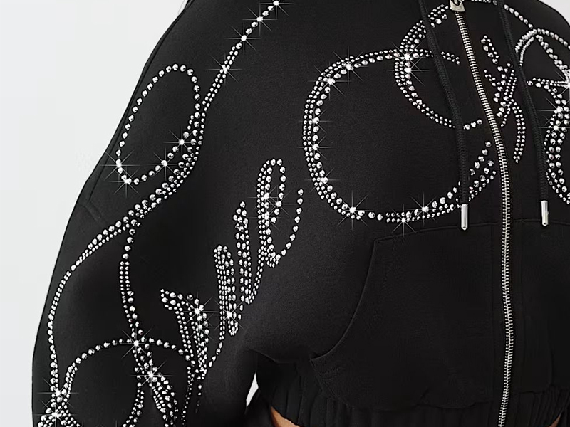 هودي بسحاب أمامي مُرصّع بأحجار الراين، ليس مجرد قطعة ملابس؛ بل هو إضافة مميزة للعلامة التجارية. إليك كيف يُمكنه مساعدة الشركات والمبدعين على تعزيز هويتهم: